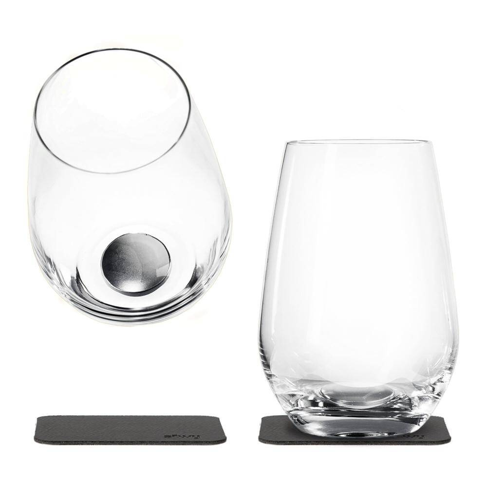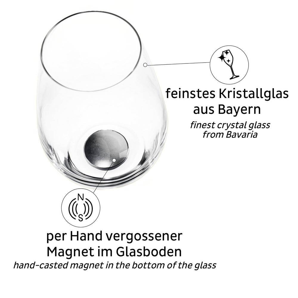 Hochwertige Kristallgläser mit integriertem Magnet. Endlich können Sie Echtgläser standfest verstauen und Ihre Getränke aus feinstem Glas genießen. Nicht spülmaschinengeeignet. Inkl. Metall-Nano-Gel-Pads.