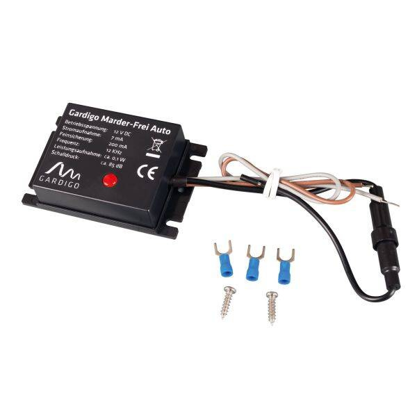 Schützt vor Marderbissen an Zündkabeln, Bremsleitungen und anderen Gummiteilen in Pkw, Wohnmobil oder Lkw. Das Gerät gibt einen ultrahohen Pfeifton in Intervallen von 15 Sekunden ab. Zwei-Wege-Anschlusssystem mit Montagesicherheit durch Verpolungsschutz und Feinsicherung. Schalldruck: 85 dB. Komplett mit 30 cm Anschlussleitung. Marder-Frei arbeitet mit& 12 kHz.