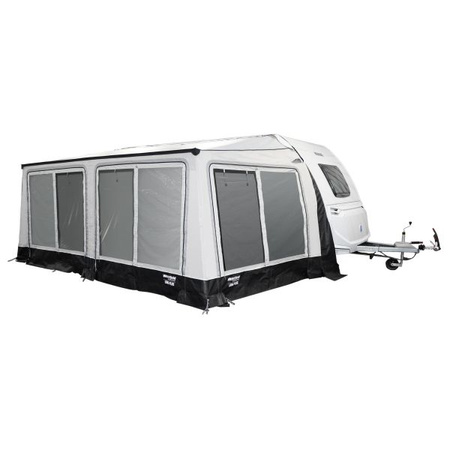 Die Anschlussseite des Vorzelts ist mit praktischen Vario-Ecken ausgestattet, die für eine optimale Passform am Wohnwagen sorgen. Diese Vario-Ecken garantieren zudem eine perfekte Abdichtung an den Seiten des Caravans, sodass Wind und Wetter zuverlässig draußen bleiben.
