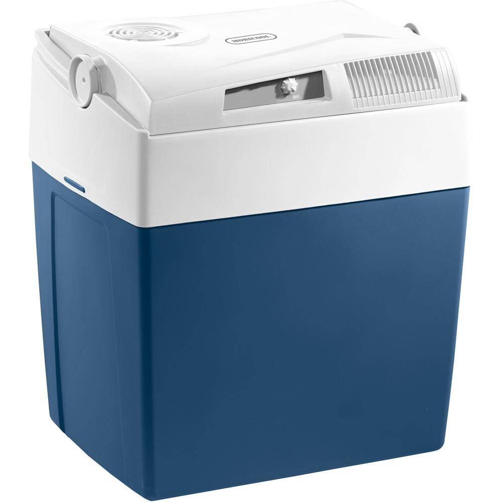 Diese sehr energieeffiziente thermoelektrische, für 12 und 230 Volt anschlussfertige Kühlbox mit einem Fassungsvermögen von 26 Litern bietet Stehhöhe für 4 1,5-Liter-Flaschen. Ein praktisches Feature ist der Tragegriff, der im geschlossenen Zustand die Box optimal verriegelt, geöffnet aber als Deckelhalter dient, um komfortabel an den Innenraum zu gelangen. Im Deckel integriert ist ein Fach zur Unterbringung des Anschlusskabels. Nennleistung 47 Watt bei 12 Volt bzw. 55 Watt bei 230 Volt, Maße B 39,6 x H 44,5 x T 29,6 cm, Gewicht 4,3 kg.