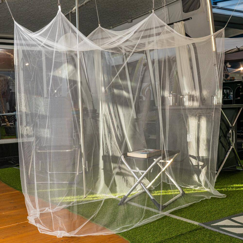 Moskitonetz in Kastenform für ungestörten Schlaf beim Campen, Reisen und Trekking. Krabbelgetier und Insekten haben keine Chance durch das engmaschige Netz zu Ihnen zu gelangen. Aus mückendichtem Moskitotüll 180 Mesh.