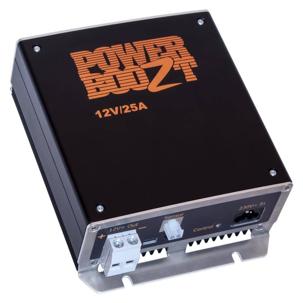 Dieses kompakte und hocheffiziente Onboard-Ladegerät für den Caravan- und Reisemobilmarkt wurde in Deutschland entwickelt und auch komplett gebaut.& Dabei wurden die Bedürfnisse des modernen Campers, der eine hohe Ladeleistung fordert, dabei aber ein geräuschloses Laden ohne lästige Lüftergeräusche wünscht, berücksichtigt. Die ausgeklügelte Form des Gehäuses mit seinen Kühlrippen sorgt dafür, dass die Temperatur an der Oberfläche auch beim Dauerladen nicht über die zulässigen Werte steigt. Abgestimmt speziell auf Lithium-Eisenphosphat-Batterien der Marke Powerboozt ist es trotzdem auch einstellbar auf LiFePO4-Batterien anderer Hersteller sowie auf Flüssigsäure-Bleibatterien, GEL-, AGM-Batterien sowie Spiralzellenbatterien (Optima). Das Umschalten erfolgt unmittelbar nach dem Einstecken der Netzspannung und muss dabei nur einmalig erfolgen.& Ein mitgelieferter Temperaturfühler sorgt dafür, dass die Lithiumbatterie beim Laden bei Minusgraden nicht mit dem vollen Ladestrom geladen wird und somit zerstört werden könnte. Bei Bleibatterien wird die Ladespannung den Temperaturen angepasst.