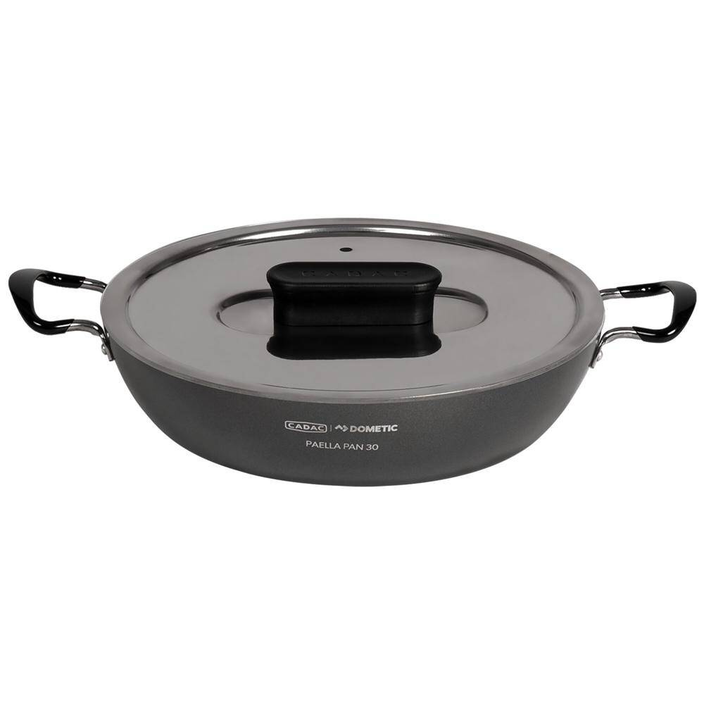 Die leichte Aluminiumpfanne mit GreenGrill-Keramikbeschichtung ist einfach zu benutzen und leicht zu reinigen. Hochwertige Edelstahlgriffe vereinfachen die Handhabung. Ideal für die Zubereitung von Risottos, Paellas, Pastagerichten und anderen Mahlzeiten. Die Pfanne hat einen Edelstahldeckel und ist für den Einsatz auf dem Safari Chef 30, dem 2-Cook und auf anderen Grills geeignet (inklusive praktischer Aufbewahrungstasche).