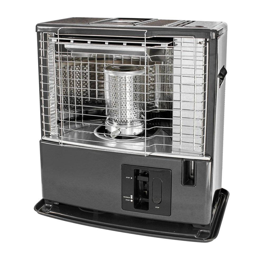 Dieser mobil einsetzbare Petroleumofen (dunkelgrau) verfügt über einen CO₂-Luftsensor und ein automatisches Not-Aus-System.