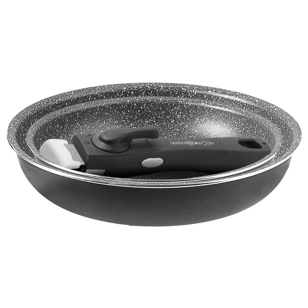 Pfannenset aus Aluminium mit Antihaftbeschichtung und Griffzange, die das Verstauen erleichtert. Die Antihaftbeschichtung ermöglicht leichtes Kochen und Säubern. Das Set besteht aus 2 Pfannen mit ø 28 cm und ø 22 cm.