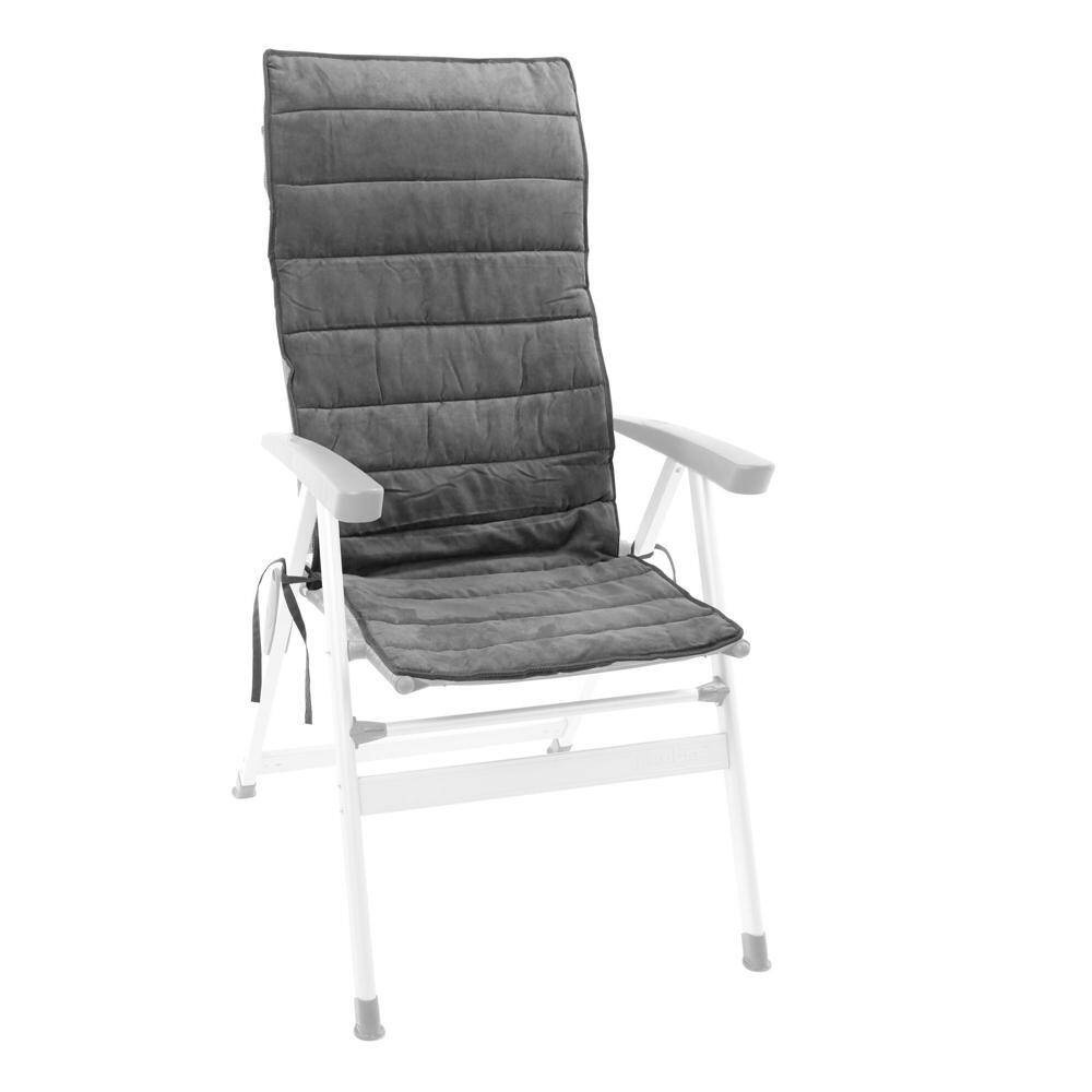 Bequeme, gut gepolsterte Polsterauflage für Freizeitstühle mit hoher Lehne. Taschen auf der Rückseite sorgen für zusätzlichen Stauraum.