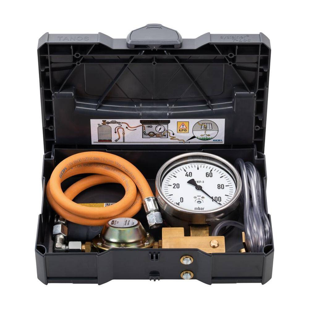 Zur Druck- und Funktionsprüfung von Druckreglern in Freizeitfahrzeugen bzw. in kleinen Wasserfahrzeugen.Bestehend aus: