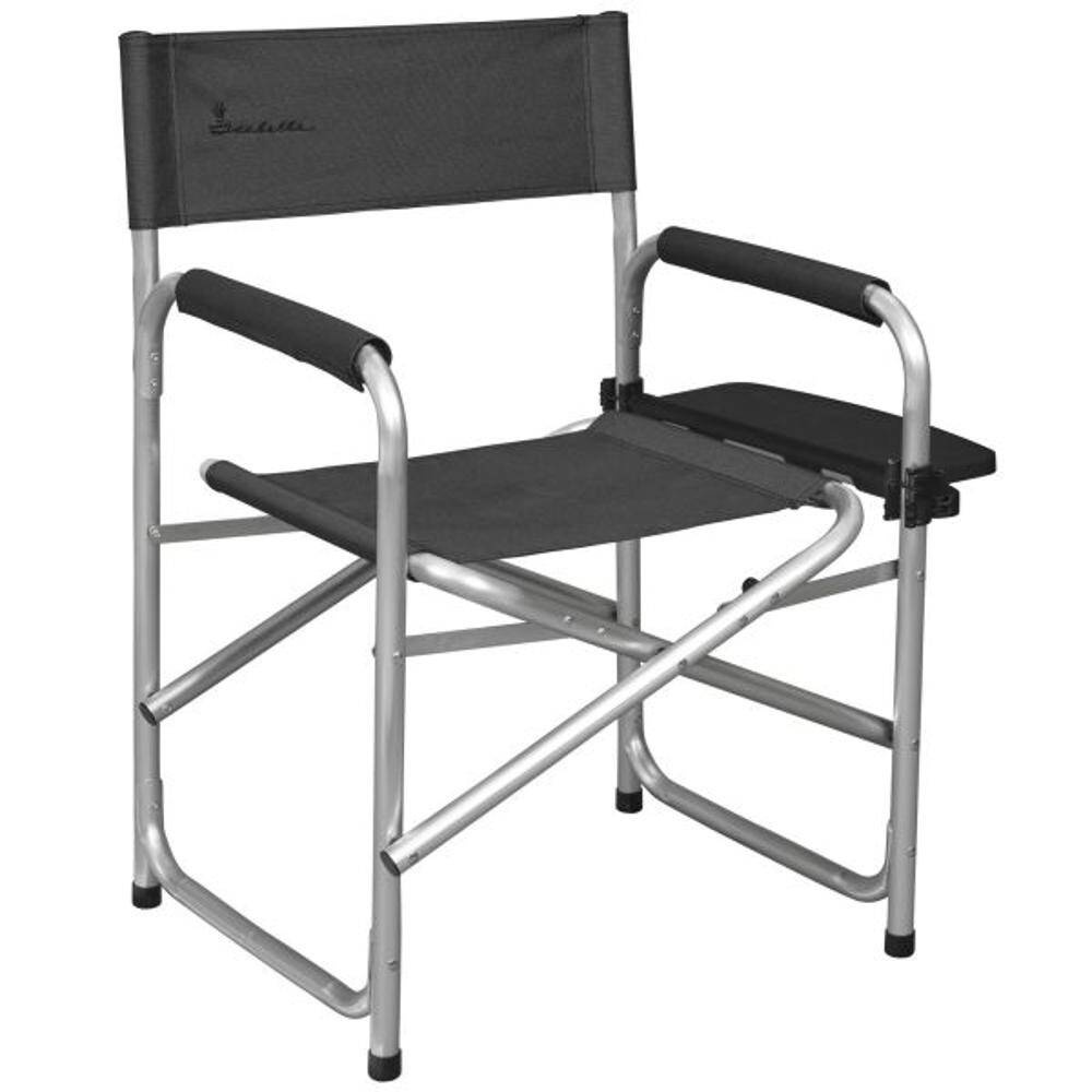 Verbesserte Version mit abnehmbarem, schwarzem Seitentisch und einer noch besseren Armlehne. Der Seitentisch kann mit bis zu 5 kg belastet werden und ist auch separat erhältlich (passt auch auf ältere Regiestühle). Der Stuhl ist zusammenklappbar.