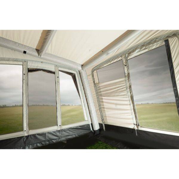 Das Luftvorzelt Pluto ist dank der AAS-Lufttechnik schnell und einfach aufgebaut. Durch den Volleinzug in der Kederschiene Ihres Caravans lassen sich alle Fenster, Türen und Serviceklappen problemlos öffnen und Ihr Caravan ist an den Seiten perfekt gegen Wind und Wetter abgedichtet. Durch das hochwertige HydroTech® CottonTouch Material, die Dauerventilation und die abgetönten Fenster kann auch an heißen Sommertagen ein sehr gutes Raumklima erreicht werden. Die abnehmbaren Vorder- und Seitenwände sind mit Moskitonetzen ausgestattet und können nach Bedarf eingesetzt werden. Das neue Modell ist außerdem mit einem Anschluss für das Sonnendach Canopy Shady Pro ausgestattet.