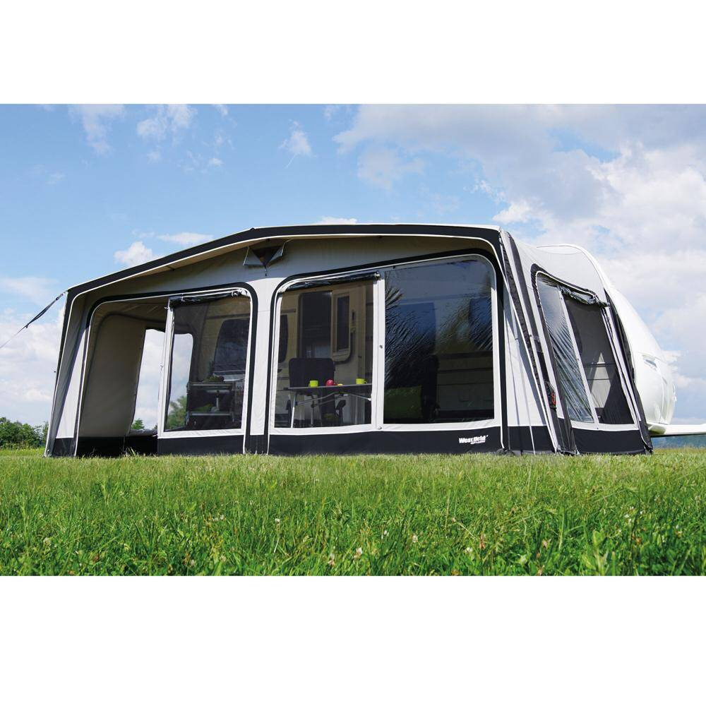 Das volleingezogene Vorzelt mit Advanced Air System® (AAS) ist der ideale Begleiter für alle Saisoncamper. Die Luftkammern werden über einen einzigen Punkt mit Luft befüllt, somit ist das Vorzelt schnell und einfach aufgebaut. Eine Dauerventilation sowie reflektierende Abspanngurte runden das Vorzelt ab. Die innenliegenden Fensterabdeckungen sind mit Reißverschluss versehen. Die Ecken des Vorzelts an der Anschlussseite an den Wohnwagen sind mit Vario-Ecken ausgerüstet und sorgen somit für eine bessere Passform des Vorzelts.Vorderwand: mit Panoramafenster; sorgt für viel Licht im Vorzelt. Die Fenster mit Moskitonetzeinsatz können jeweils als Tür genutzt oder komplett aufgerollt werden, sodass das Vorzelt als Veranda nutzbar ist.Seitenwände: mit Klarsichtfenster mit Moskitonetz sowie Seitentüren links und rechts austauschbar.Material: Komplettes Zelt aus dem Spezialstoff HydroTech® CottonTouch. Beidseitig beschichtet, spezielle UV-beständige PU-Beschichtung, schützt vor Witterungseinflüssen.Gestänge: Advanced Air System® (AAS), ab Größe 10 inklusive Vorderwand Luftschlauchset (2 Stück).