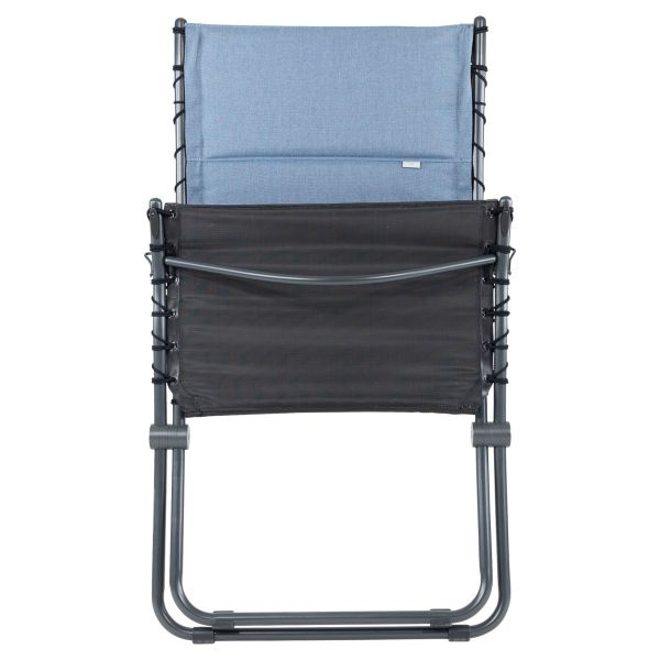 Der äußerst luxuriöse und bequeme Relaxsessel ist in 3 Positionen verstellbar und bietet so optimalen Sitzkomfort. Darüber hinaus sind sowohl die Rückenlehne als auch die Armlehnen ergonomisch geformt und der Stuhl lässt sich sehr flach zusammenklappen. Der Stuhl ist mit einem angenehm gepolsterten Tex-Comfort-Gewebe ausgestattet. Dieses Gewebe ist aufgrund seiner offenen Zellstruktur sehr pflegeleicht, wasserabweisend und besonders beständig gegen Verfärbungen durch die Sonne. In Kombination mit der elastischen Befestigung sorgt das gepolsterte Gewebe für ein optimales Sitzerlebnis. Der hochwertige Relaxsessel trägt das TÜV-Qualitätssiegel und eignet sich ideal für den Garten oder den Campingplatz.