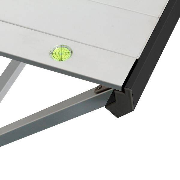 Patentierte Aluminiumtische mit Rollplatte und einem speziellen, einfach zu montierenden Klapprahmen.