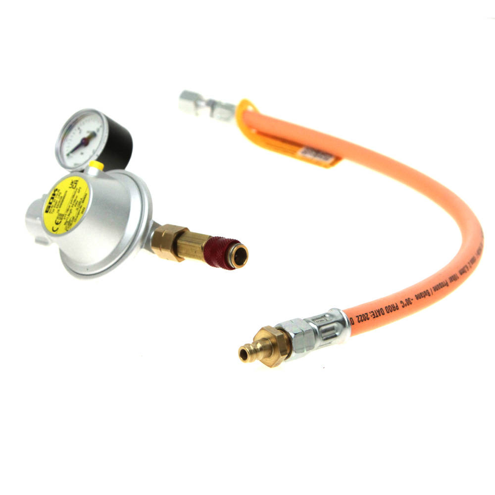 Es ermöglicht ein einfaches Trennen und Wechseln der Flasche mit Reduzierstück von der Installation und einen einfachen Anschluss an externe Geräte, z. B. einen Gasgrill.