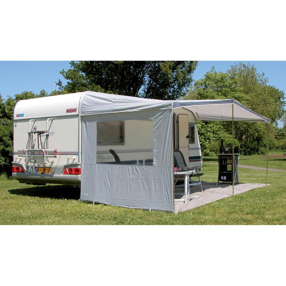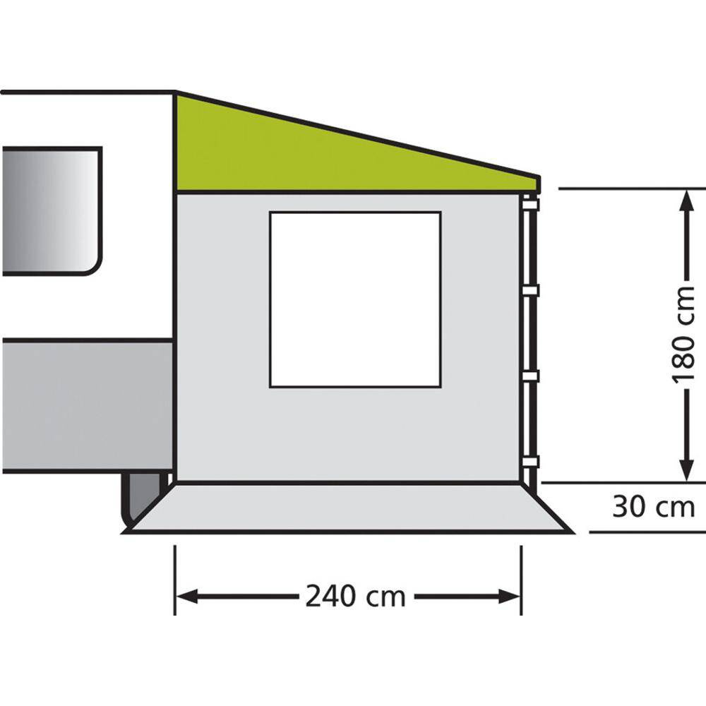 Für Sonnendächer mit einer Tiefe von 240 cm. Mittels verstellbaren Spannbändern wird die Seitenwand am Sonnendachgestänge aufgehängt und nach unten abgespannt. Die Seitenwand kann sowohl rechts als auch links verwendet werden.