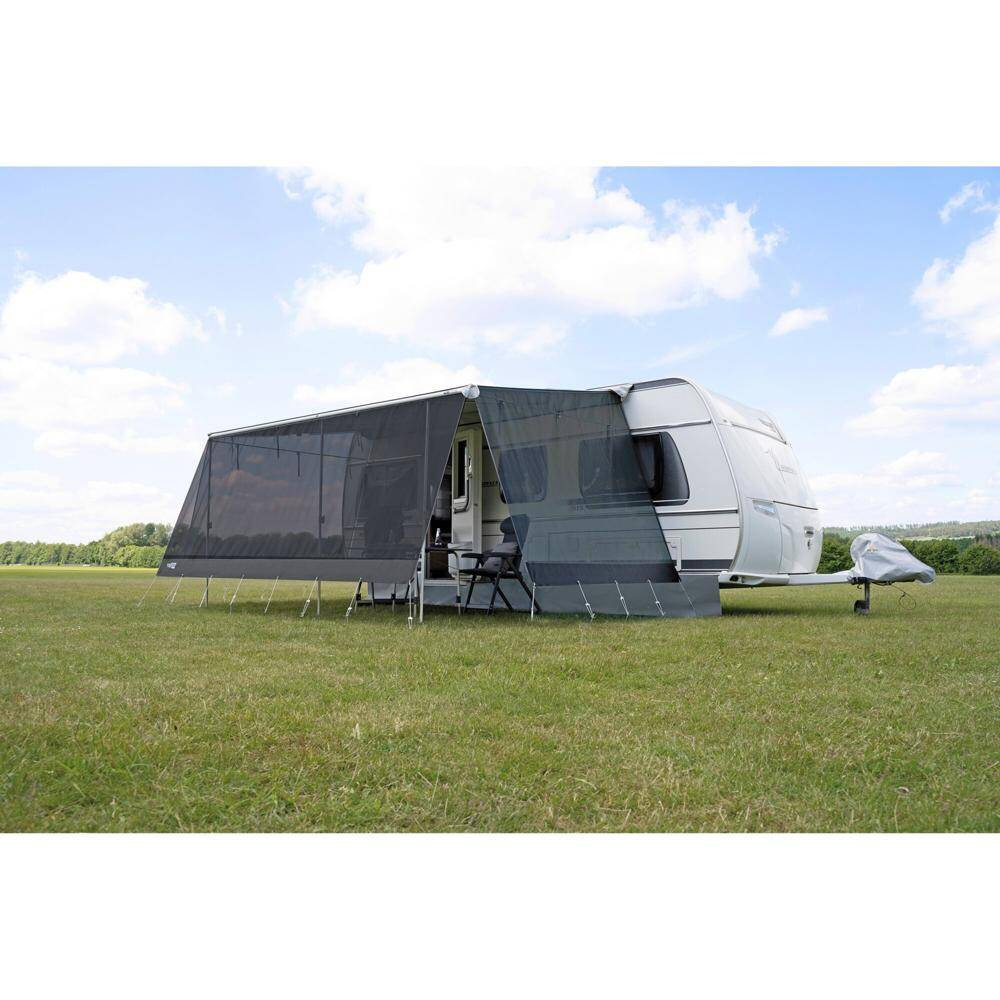 Das neue BLOXX System von WIGO bietet in der Ausführung Screen Schutz vor Sonneneinstrahlung und hat eine sehr gute Luftdurchlässigkeit. Anders die Variante View, die den neugierigen Blick von außen verhindert, es aber erlaubt von innen nach außen zu schauen. Die Vorderwand wird einfach in die Kederschiene der Markise eingezogen, die Seitenwand wird auf die seitliche Dachstange geschoben und mit der Markise verklettet. Beide werden mit Heringen am Boden verspannt. Lieferung erfolgt inklusive Abspannmaterialien und einer Transporttasche. Das System zeichnet sich durch geringes Gewicht und kleines Packmaß aus. Das BLOXX System für andere Größen ist als Sonderbestellung möglich.