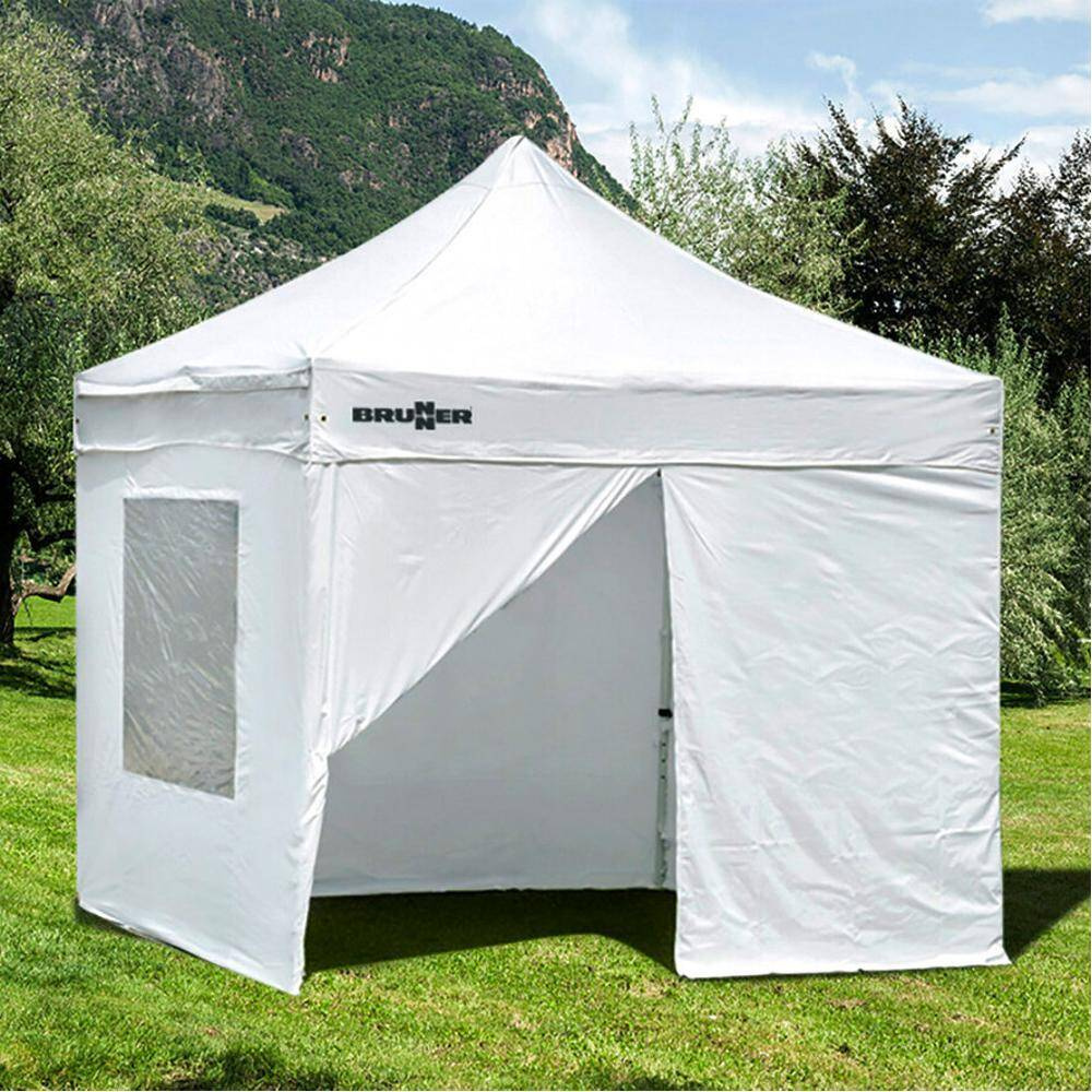 Vier Seitenwände für Faltpavillon Zebò. Schließt den Pavillon rundum ab und bietet wirksamen Schutz gegen Regen, Wind und indiskrete Blicke. Zwei Wände mit Reißverschluss. Zwei Wände mit Fenstern. Material: Polyester 290 g/m².