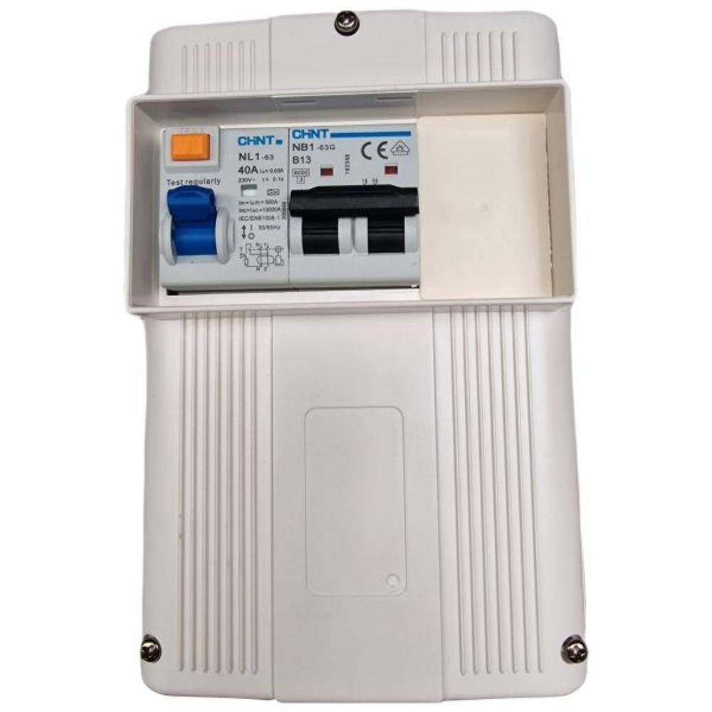 Sicherungskasten 230 V/50 Hz, 40 A/30 mA FI-Schutzschalter, 2-poliger 13-A-Sicherungsautomat, horizontaler und vertikaler Einbau möglich. Nur im Innenraum verwendbar!& Für den Dauerbetrieb zugelassen!