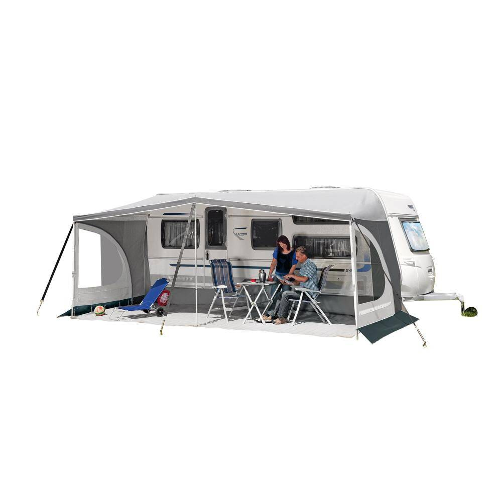 Mit der komfortablen Tiefe von 235 cm und den robusten Seitenteilen, die ganz einfach durch Reißverschlüsse mit dem Vordach verbunden werden, bietet es von allen Seiten perfekten Schutz.& Die erforderliche Größe richtet sich nach dem Umlaufmaß Ihres Wohnwagens. Durch die zusätzliche Vorderwand wird Bermuda zu einem kompletten Vorzelt. Diese wird mit Reißverschluss im Giebel befestigt. Eine Verbindung zu den Seitenwänden erfolgt ebenfalls mittels Reißverschluss.