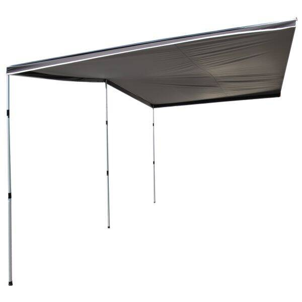 Das in Deutschland hergestellte Sonnendach Canopy Shady Pro kann direkt an Ihrem Wohnwagen genutzt oder an den Modellen Galaxy, Pluto, Pluto XL, Ceres und Vega (Modellserien ab 2023) angebracht werden. Mit einer Tiefe von 220 cm und ausgestattet mit dem hochwertigen HydroTech® Ripstop Material schützt das Canopy Shady Pro zuverlässig vor Sonne und Regen. Mit den drei stufenlos höhenverstellbaren Stangen und vier Abspannleinen lässt es sich sehr einfach und schnell aufbauen. Erhältlich in verschiedenen Größen, jeweils mit einer Tiefe von 220 cm.