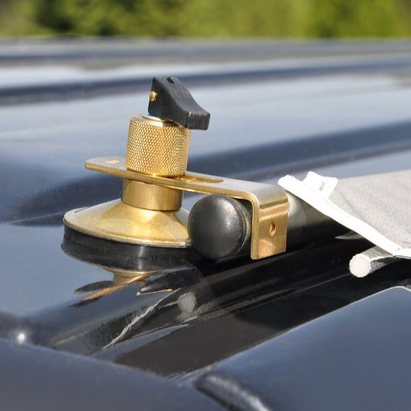 - Schleusenstab: Nutzen Sie den mitgelieferten Schleusenstab, der in den Hohlsaum des Sonnendachs geschoben wird und sicher in der Regenrinne Ihres Fahrzeugs befestigt werden kann.