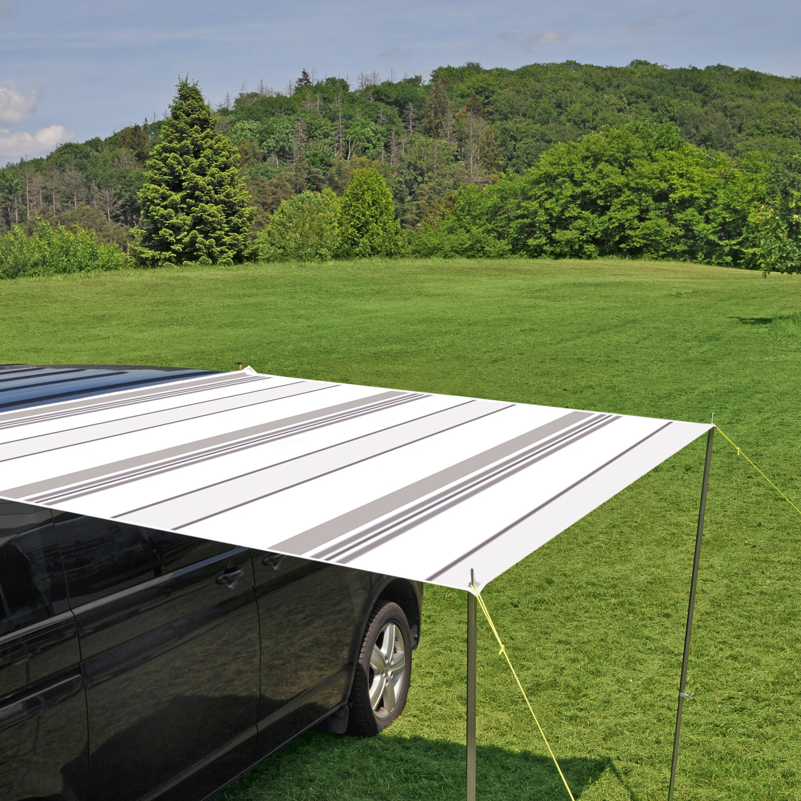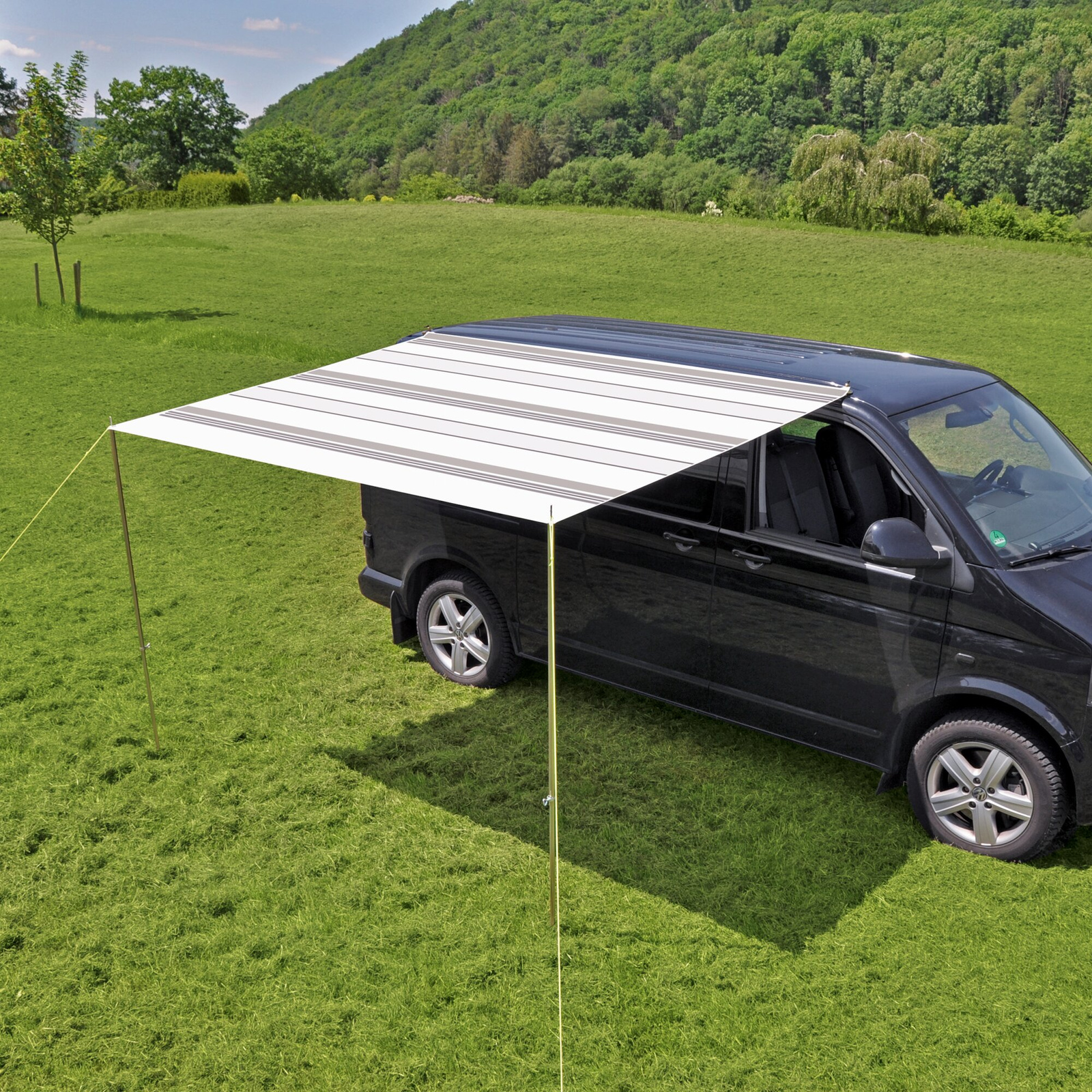 Entdecken Sie mit dem Sonnendach Elba das ideale Zubehör für Ihren Van! Mit seinem modernen Streifendesign in Grau/Anthrazit vereint dieses Sonnendach Funktionalität und Stil und bietet Ihnen schnell und einfach Schutz vor der Sonne.