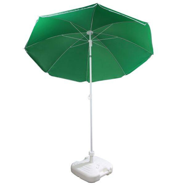 Preisgünstiger Sonnenschirm. Stockstärke 25 mm, sortierte Farben. Farben: blau, gelb, grün.