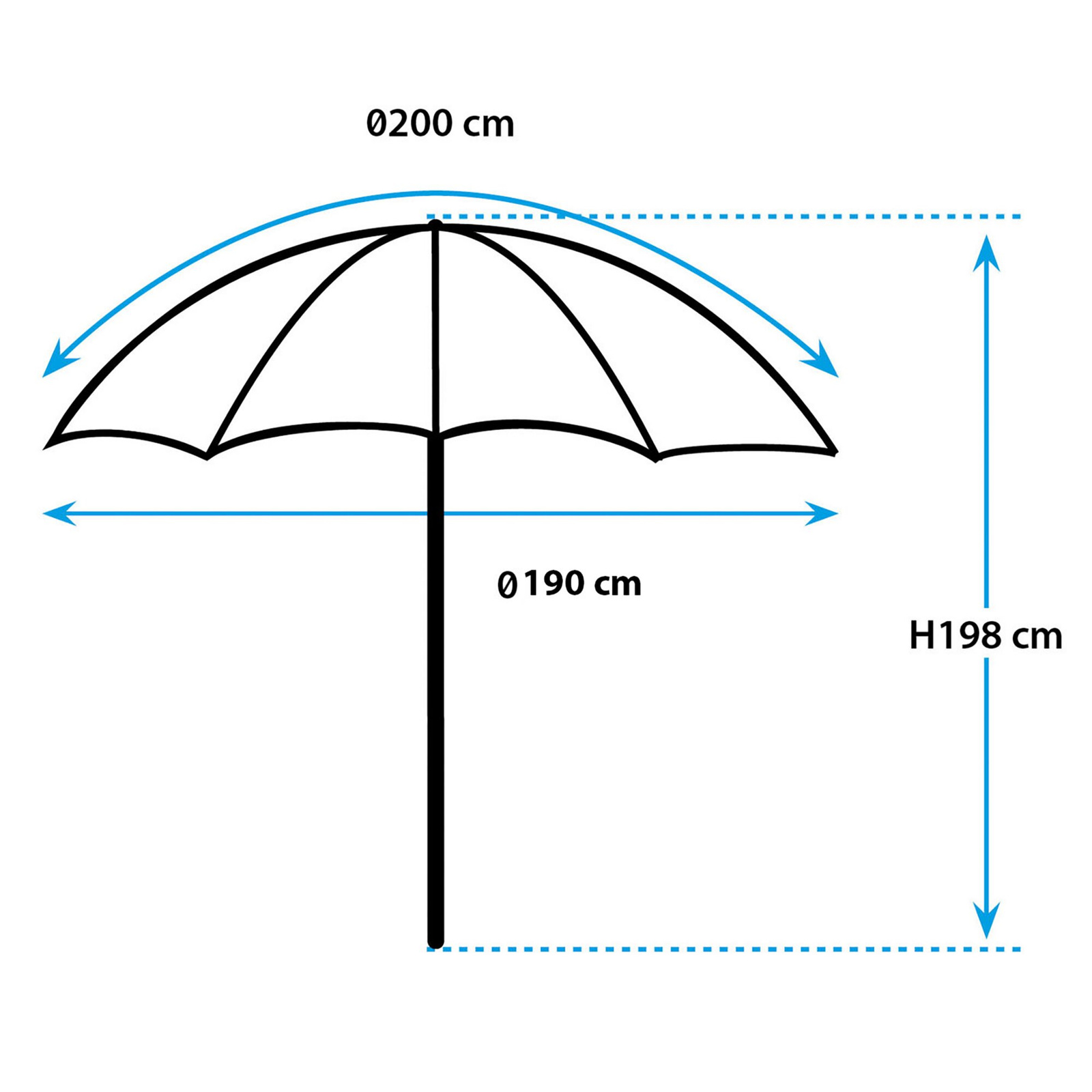 Hochwertiger Sonnenschirm für Garten und Strand. Schirmmaterial aus hochwertigem 100 % Polyester mit alubeschichteter Innenseite. Der robuste Alustock ø 32 mm ist mit einem praktischen Alu-Knicker versehen. Mit Windauslass und Tragetasche. Farbig sortiert: blau oder grau.