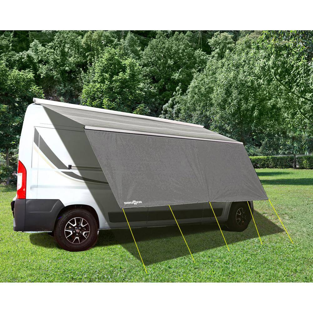 Komfortable Sonnensegel aus UV-beständigem Kunstoffgewebe. Rundum gesäumt, mit Ösen. Einfache Montage an der Kederleiste von Wohnwagen, Wohnmobilen, Kastenwagen oder Bussen. Geeignet für Fiamma-, und Thule-Markisen. Heringe und Abspannleinen sind im Lieferumfang enthalten.