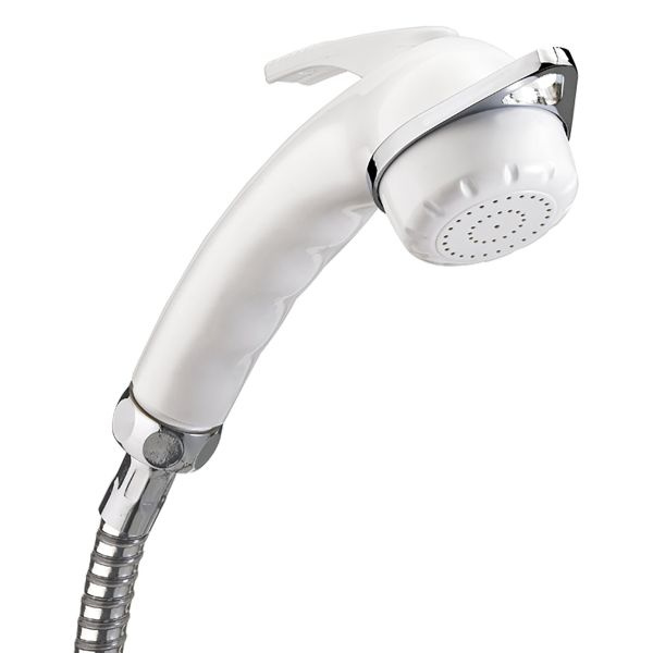 Stellbrause Charisma mit 1,5 bzw. 2 m Metallschlauch für Wassersteckdosen & Versorgungsklappen. Einstellbar: Impuls/Dauerlauf/Aus.