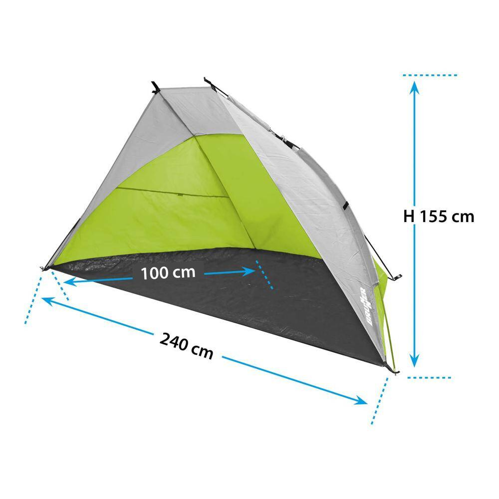 Idealer Begleiter am Strand. Die Tonga Strandmuschel bietet effektiven Schutz vor Wind, Sand und unerwünschten Blicken. Mit eingenähtem Boden. Der Aufbau ist sehr einfach und minutenschnell erledigt.