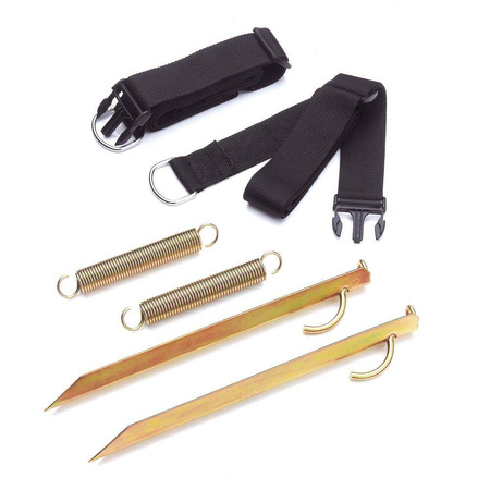 Für alle StarCamp und Dorema Vorzelte und Sonnendächer, die mit den dafür benötigten Steckschnallen ausgerüstet sind. Lieferumfang: 2 Heringe (38 cm), 2 Federn und 2 verstellbare Gurtbänder.