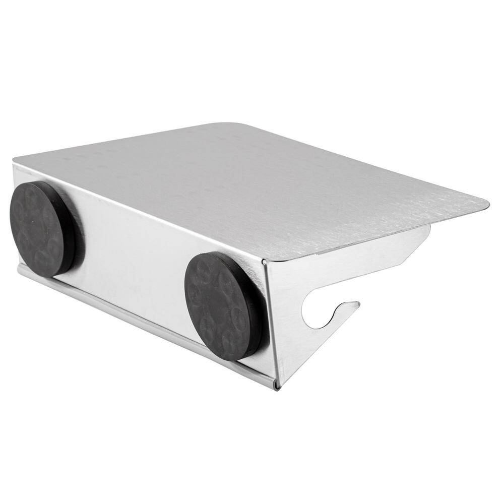 Das schwebende Tablett – schnell angebracht, schnell wieder weg! Flexible Ablage aus elegantem Edelstahl.