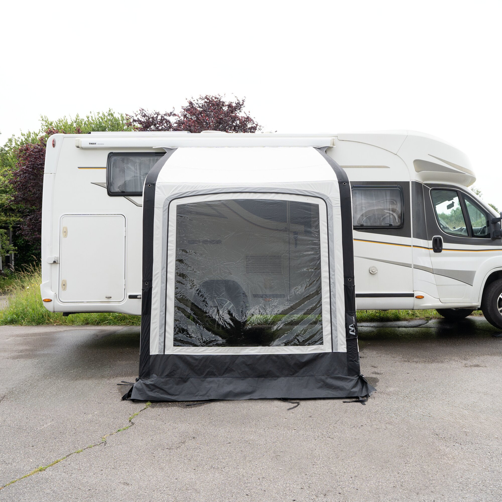 Das Luftvorzelt Vega ist die perfekte Wahl für Menschen, die viel reisen und oft den Standort wechseln, da es sich schnell auf- und abbauen lässt. Durch seine Tiefe von 220 bzw. 250 cm bietet das Luftvorzelt sehr viel Platz im Innenraum. Die Luftschläuche sind so konstruiert, dass Sie eine optimale Stehhöhe haben und die Fläche optimal nutzen können. Durch die Panoramafenster entsteht ein besonders großes Raumgefühl. Dank des enthaltenen Gaze-Elements ist es perfekt für warmes Wetter geeignet, denn es spendet Schatten, Insekten bleiben draußen und dadurch herrscht im Zelt ein angenehmes Klima. Dieses Modell ist außerdem mit einem Anschluss für das Sonnendach Canopy Shady Pro ausgestattet.