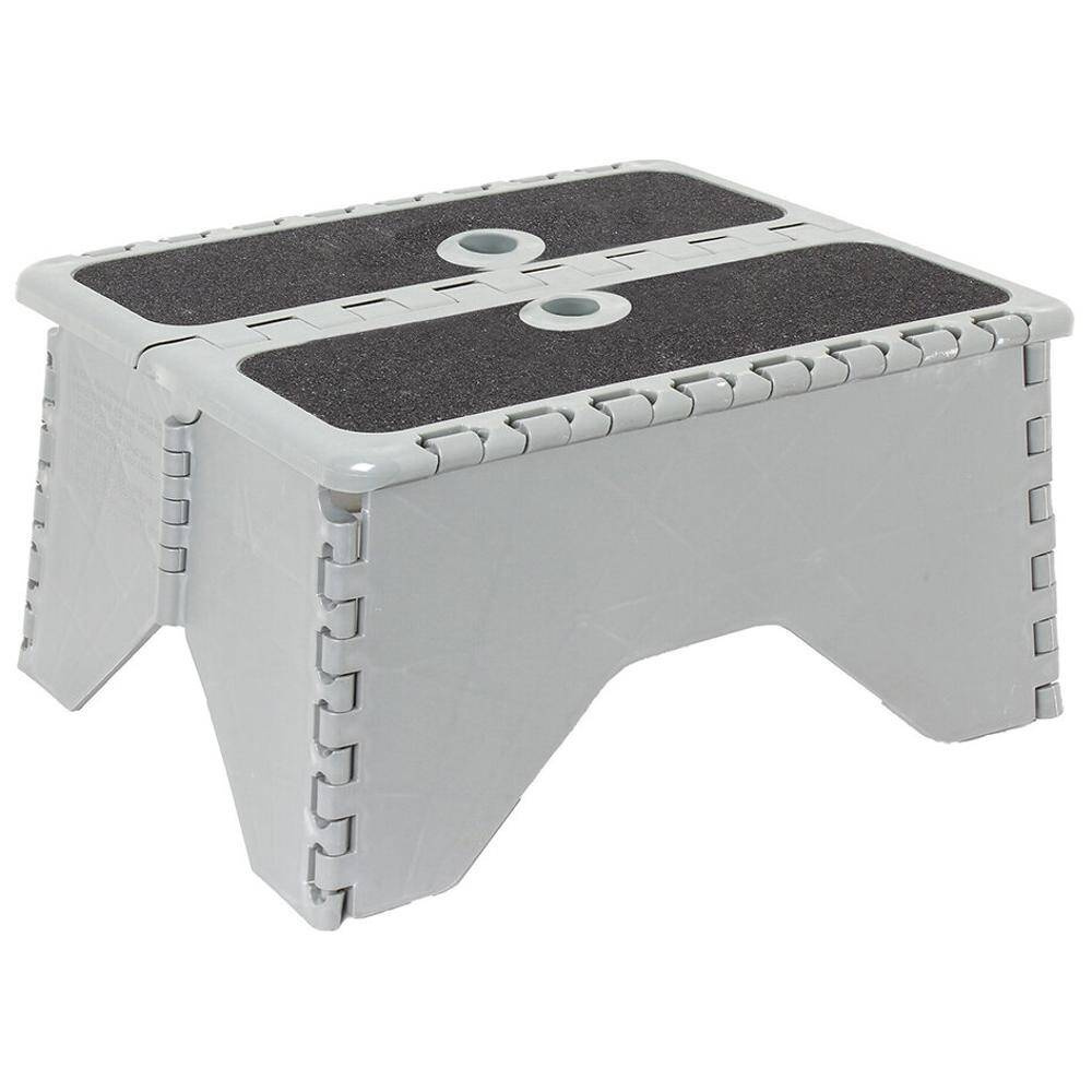 Kompakte Klapptrittstufe für Caravaning, Camping und Haushalt. Robuste, strapazierfähige Kunststoffkonstruktion. Mit rutschfester Trittfläche. Einfach zu falten und zu verstauen.