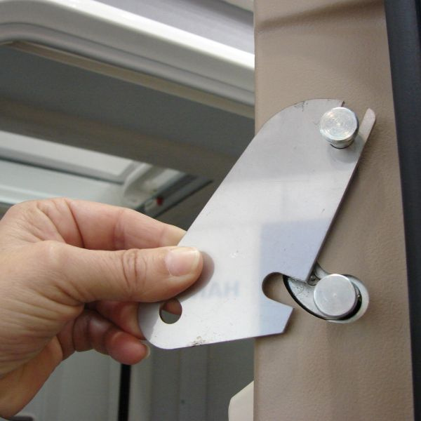 Der Elefant verhindert ein gewaltsames, unbefugtes Öffnen der Wohnmobiltür von außen. Die Verriegelung wird bei geschlossener Tür von der Innenseite zwischen das Schloss und das Schließblech eingeführt. Dadurch ist ein Öffnen der Tür weder von außen noch von innen möglich.