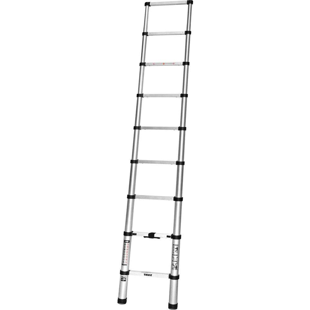 Die 9-stufige Teleskopleiter bietet einfachen und sicheren Zugang zum Fahrzeugdach, Trägersystemen und Aufbauten. Dank des mitgelieferten Magnetbefestigungssets (Art.-Nr. 71 993, Seite 665) kann die Leiter an allen Seiten des Fahrzeugs genutzt und gesichert werden und steht stabil auf jedem Untergrund. Sie ist von 75 cm bis zu 264 cm ausziehbar. Sie ist mit einem Luftdrucksystem ausgestattet, welches als Einklemmschutz fungiert sowie zum sicheren Einschieben dient. Im Lieferumfang ist eine praktische Transporttasche enthalten. Belastbar bis 150 kg, Maße B 49 x H 75 / 264 x T 7 cm, Gewicht 8,1 kg.