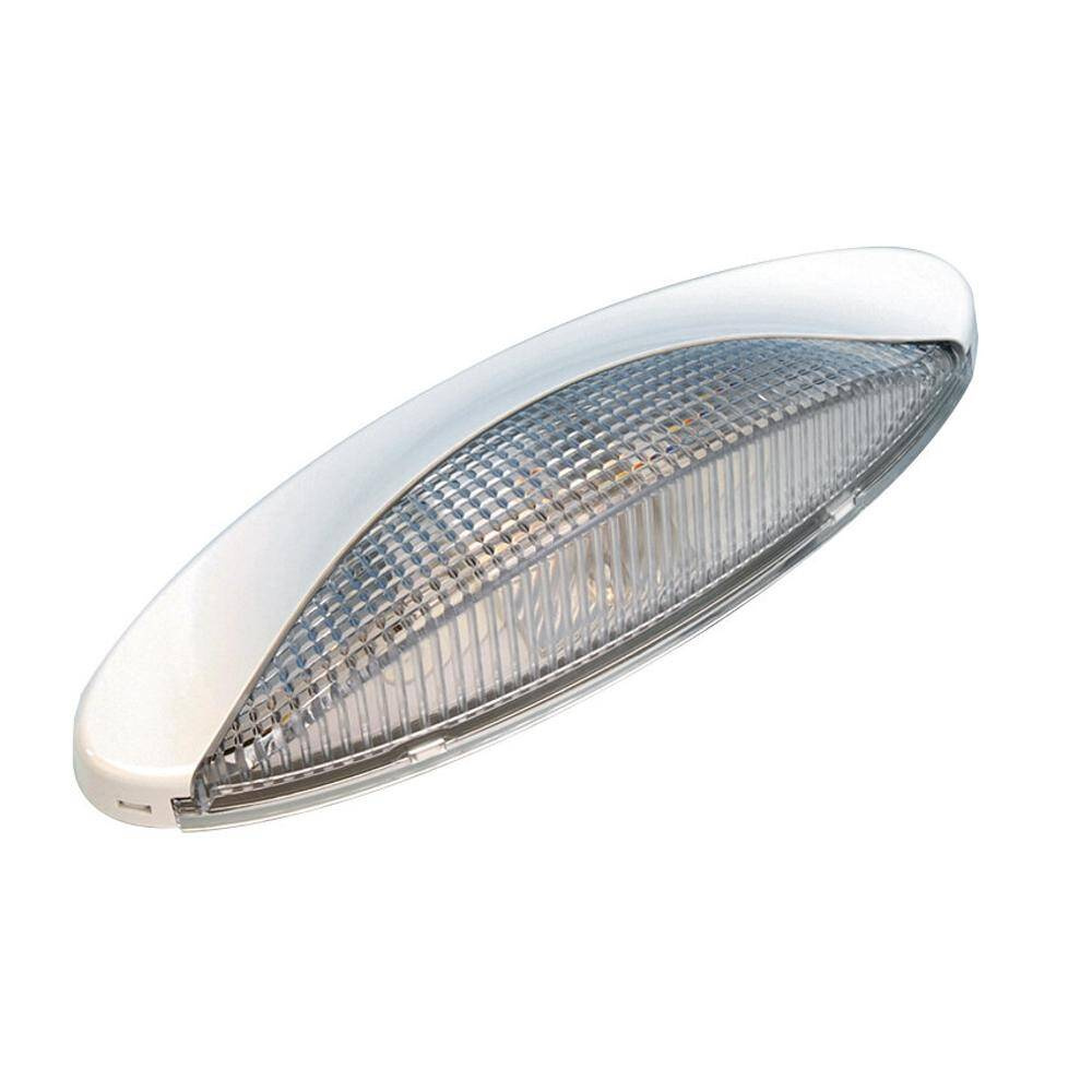 Spritzwassergeschützte Vorzeltleuchte, Kunststoffgehäuse mit weißer Abdeckung. Mit 18 LEDs.