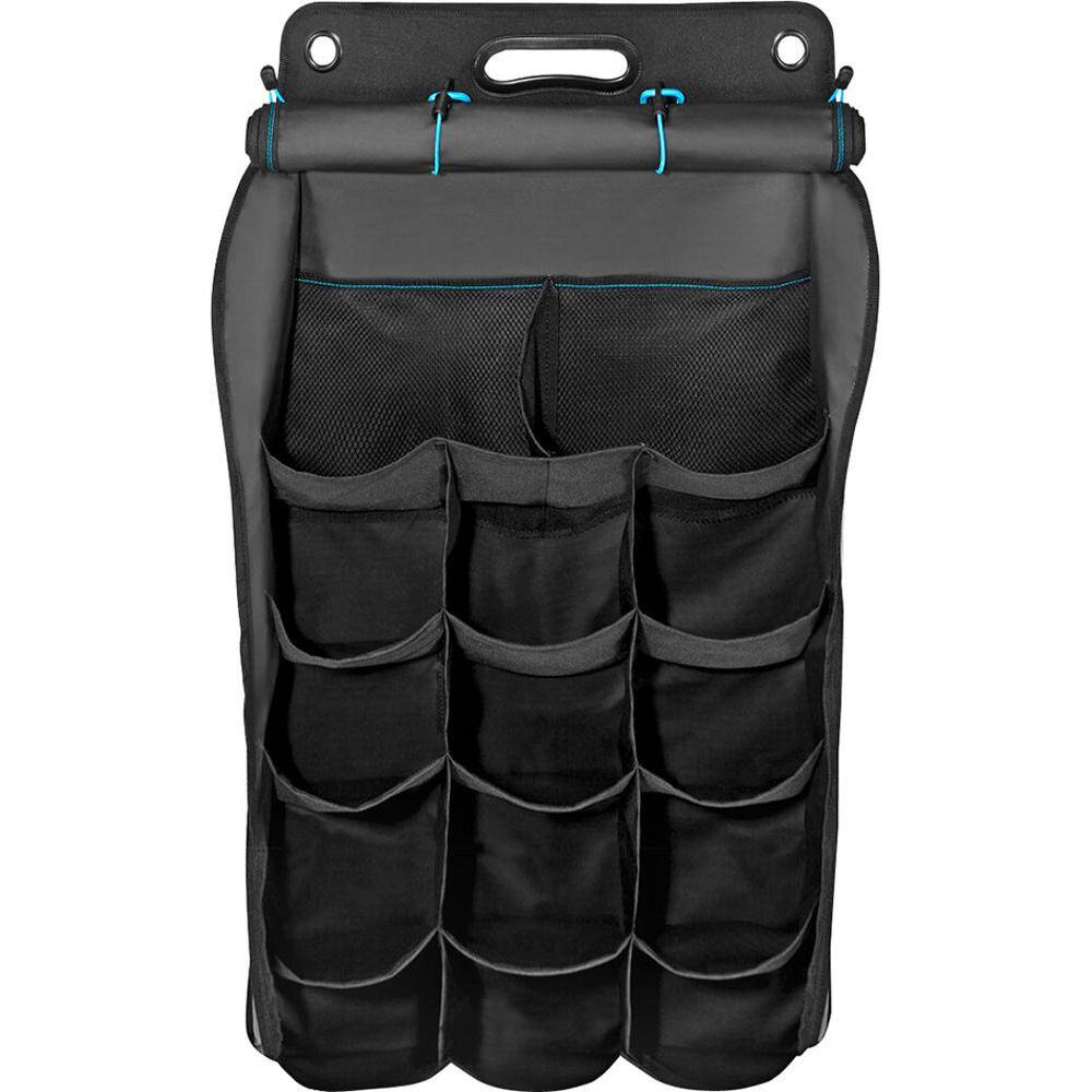Hochwertige, strapazierfähige Utensilientaschen, deren Front hochgerollt oder zum Schutz des Inhalts mit Reißverschlüssen geschlossen werden kann. Der aus verstärktem Polyester bestehende Korpus kann mittels großer Ösen oder fest vernähter Gurte einfach am POD-System 2.0 (Art.-Nr. 71 990, nicht im Lieferumfang enthalten) befestigt werden. An der Oberkante des Korpus ist ein praktischer Tragegriff integriert.