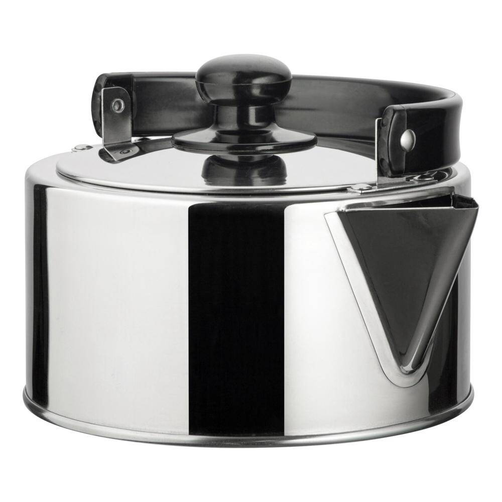 Edelstahl-Wasserkessel mit großer Einfüllöffnung und klappbarem Griff. Induktionsgeeignet.