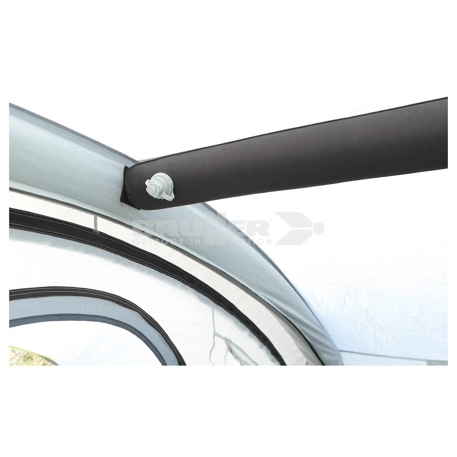 Die Idee hinter diesem System ist einfach und gleichzeitig clever: Das traditionelle Metall- oder Fiberglasgestänge mit einem aufblasbaren Luftrahmen ersetzen und zwar unter Beibehaltung der wesentlichen Merkmale der Robustheit und Stabilität. Der Aufblasprozess ist erstaunlich schnell und einfach. Die mitgelieferte Doppelhubpumpe ist sicher und komfortabel zu bedienen und verfügt außerdem über ein spezielles Druckventil, das eine Überbefüllung der einzelnen Luftkammern verhindert.